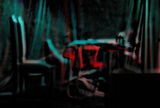 Resonant Blue starts off squatting on the front of the stage, low level drone-stuffs laid out in front of him: keyboard and laptop, it modulates nicely for a while then seems to lift in a rush that precedes a whirr of traffic and field recordings and goes off in a more Ypsilon in Malaysia pale mode, the noise becoming tones and chimes, again it lifts into more digital sounding synths, before thickening up again with more choral drones and heading for deep space. Truly music for Starfelds.