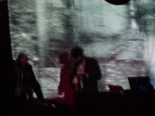 The second Noteherder & McCloud set took me by surprise by starting with some whistling birdsong before electronic burbles transformed into staccato bass with Chris saxing at full throttle with noise stabs sliding in sawtooth. It degenerates into squeaks and pops before coming back for a little full throttle action and close. I can’t comment on _minimalVector’s visuals, as I was looking the wrong way, but I’ve heard they were immersive to the point of overwhelming: sliding across two walls like slippery nightmare woods.