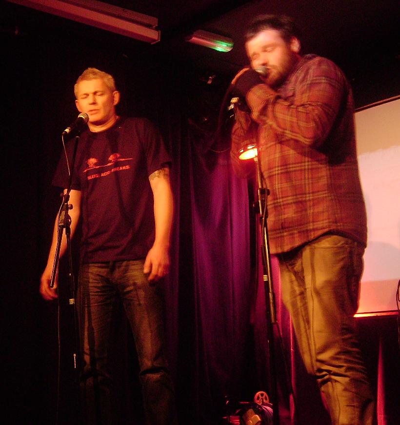 Second up is Leaver, one of whom toured with Tim Holehouse last year and enjoyed his show with us so much he had to come back to Brighton and spend some more time here. They do short constructed but completely unnerving songs. There’s something very sinister, unsettling about them. They do enjoy the live ambience of the GDS though, Angel at one point fleeing his laptop on the stage to howl around the room.