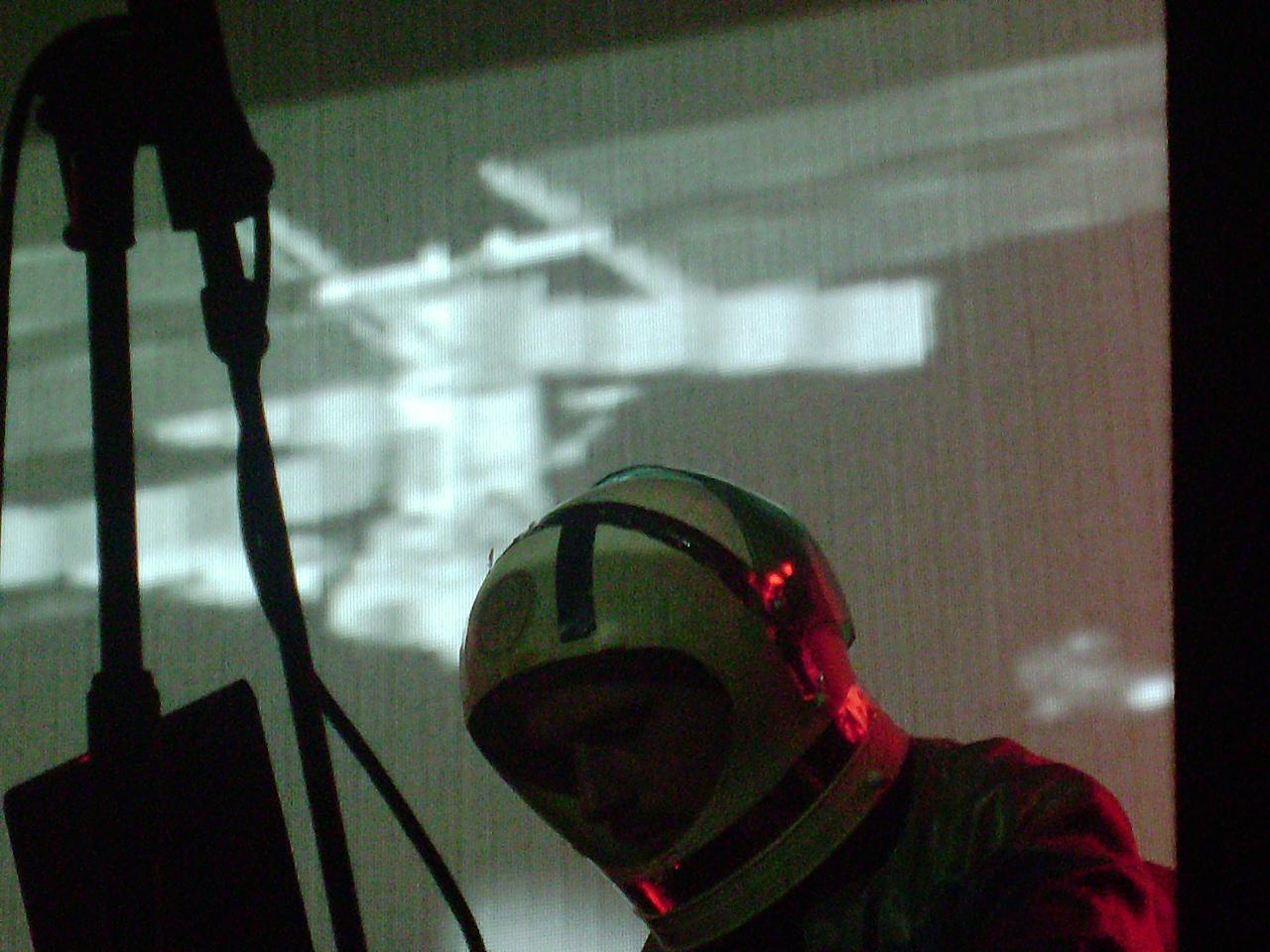 For various reasons, I’m not doing things at this show, and when I arrive Andrew and Tom have just started the Broken Star set. They set up on the floor of the Green Door Store, so as not to occlude the slide-show of Toms photographs of London. Updated since they first did this show at The Komedia. Tom’s getting some pretty nasty textures from his e-bowed guitar while Andrew switches around between electric piano and organ arpeggios, he hasn’t been wasting the things he’s learnt on his recent shows based around exploring Terry Riley’s mid sixties pieces, there’s some nicely psychedelic work afoot in here, slowly unfolding melodies in strange keys.