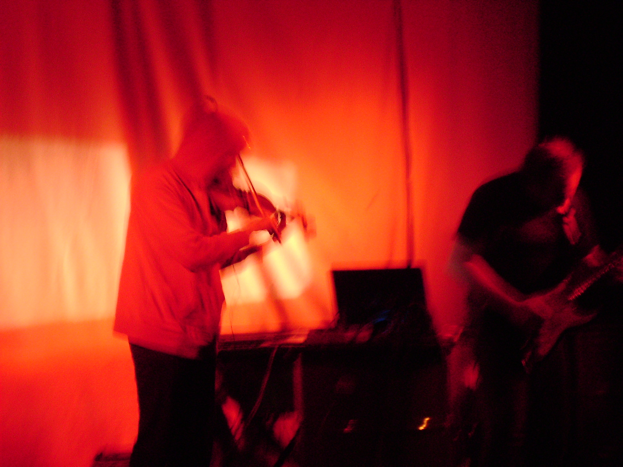The second Noteherder & McCloud set took me by surprise by starting with some whistling birdsong before electronic burbles transformed into staccato bass with Chris saxing at full throttle with noise stabs sliding in sawtooth. It degenerates into squeaks and pops before coming back for a little full throttle action and close. I can’t comment on _minimalVector’s visuals, as I was looking the wrong way, but I’ve heard they were immersive to the point of overwhelming: sliding across two walls like slippery nightmare woods.