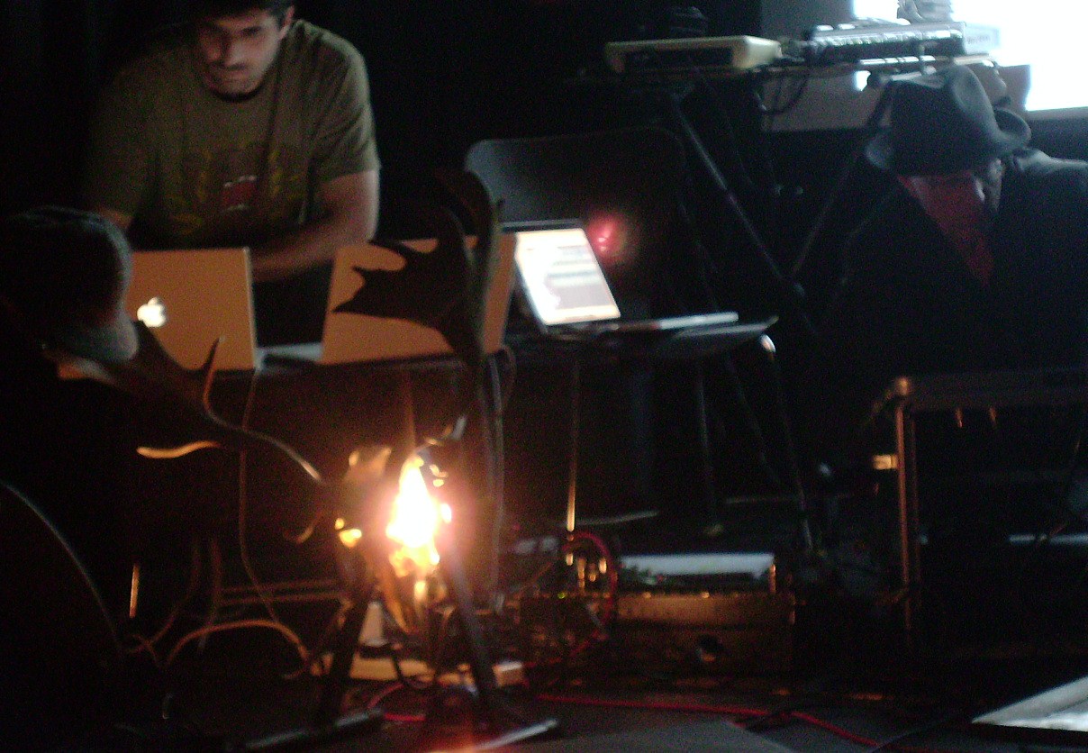 So Jobina Tinnemans finishes the evening, with two pieces. As a proper composer she does introduce her pieces in full, the first is based on recordings of voices from the Chamber Choir of South Iceland pretending to be birds that she has trapped inside a number of small jars. It’s a semi improvised piece, with the jars being chosen and Shaken, some Max/MSP processing is definitely going on there, with some of the results sounding remarkably like David’s field recordings. The sound is more spacious than anything else we’ve heard this evening. Supporting the sounds are violin or cello sonorities and synth washes, with a massive foghorn indicating closure is imminent.