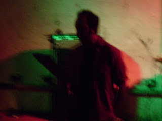 The electrocreche was already set up playing through Andrew Greaves’ mixer in preparation for his set, where he would process it through a couple of monotribes (mmmm, a fetching pink number with enhanced Valvery) and add some Casio and some recordings from the bar downstairs. It slid in more or less seamlessly, the toy guitar feedback and cheap Yamaha synth merging with static cassette hi-hat staggers manufactured on the fly. Structure gradually emerging from the chaos as people rotated through the crèche toys and Andrew’s processing picked out different elements and manipulated them. Rhythmic patterns, pseudo sequences, bass lines. It was quite odd, you would be playing something on say the kids guitar and switch from one end of the neck to the other or drop off the overdrive and nothing you could immediately put your finger on would change, but the sounds would shift in quality but if you tried to make it a conscious thing – not a hope. In many ways this was the success of the evening as it seemed quite unlikely that it would work beyond being an interesting idea – everything else was a cert! It all finished with a percussive rhythmic part and the bar voices coming back in full strength, the guitar left unattended holding down some keys on the Yamaha.