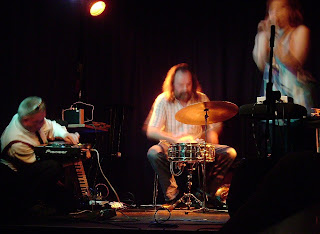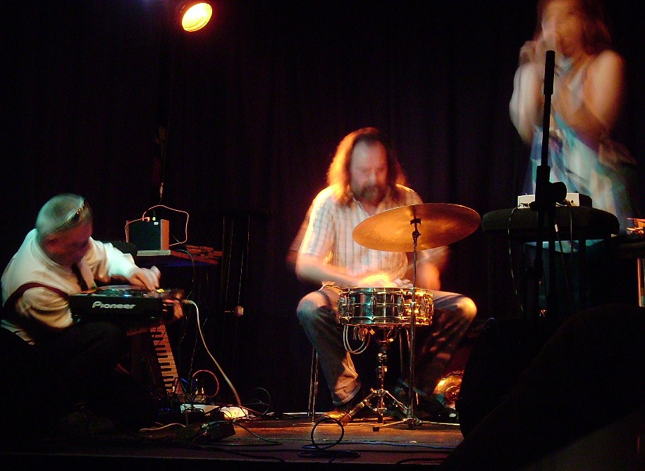 Last up and in the dark is Scrase, there are folk travelled up from Portsmouth to see him. They’ll need good eyesight – Ha! Can hear him plenty though. This is a laptop set, generative processing and completely tonal. So abstract its hard to describe, its the kind of thing that would normally be expected to be cold and distant, but this is warm, and immediate and oddly thrilling. Um, things change abruptly, algorithmically I suspect, sometimes slurring, sometimes loud, sometimes quiet. Things switch back and forth as if controlled by an old style squarewave LFO. There sa bit that reminds me of EVOLS clanger conversation set back at the Komedia, but then it drifts off into moogy space territory. Some passages are dense with incident, some sparse and rather lovely. Constant motion. I’m going to give up now. Proper artistic endeavour. And I loved it.